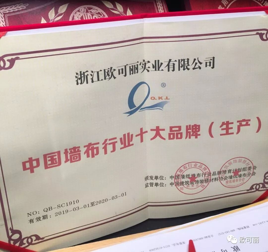 Honor is a manifestation of recognition. Congratulations to Oukeli for being awarded the "Top 10 Brands in China's Wall Covering Industry" in 2018. As a production-oriented enterprise, Okly has always adhered to innovative products and high-quality services, and regards end consumers as the only service target. We would like to thank the most authoritative China Building Decoration Materials Association for this honor and also thank consumers for recognizing our Okly brand.